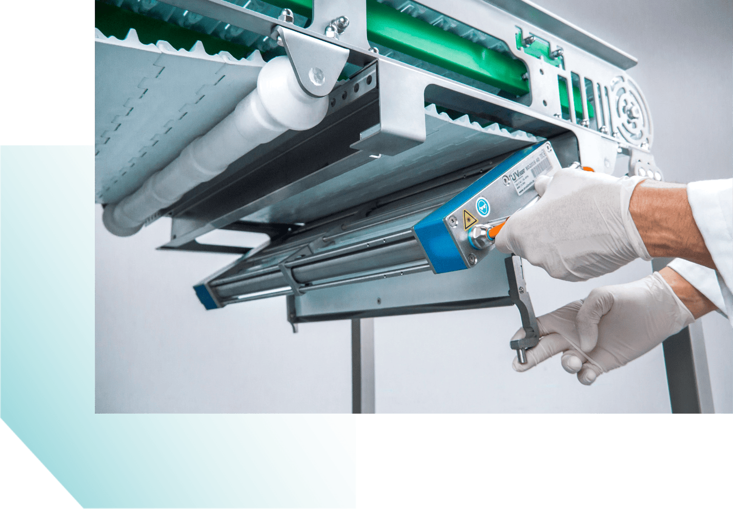 Deze desinfectie units zijn geschikt voor het desinfecteren van lange transportbanden in de voedingsmiddelenindustrie.