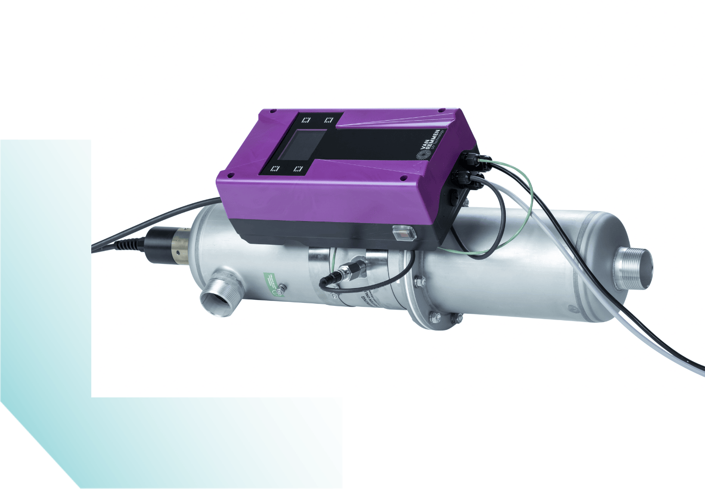 UVC-desinfectiesystemen voor stromend water in een leiding. Voor drinkwater of proceswater.